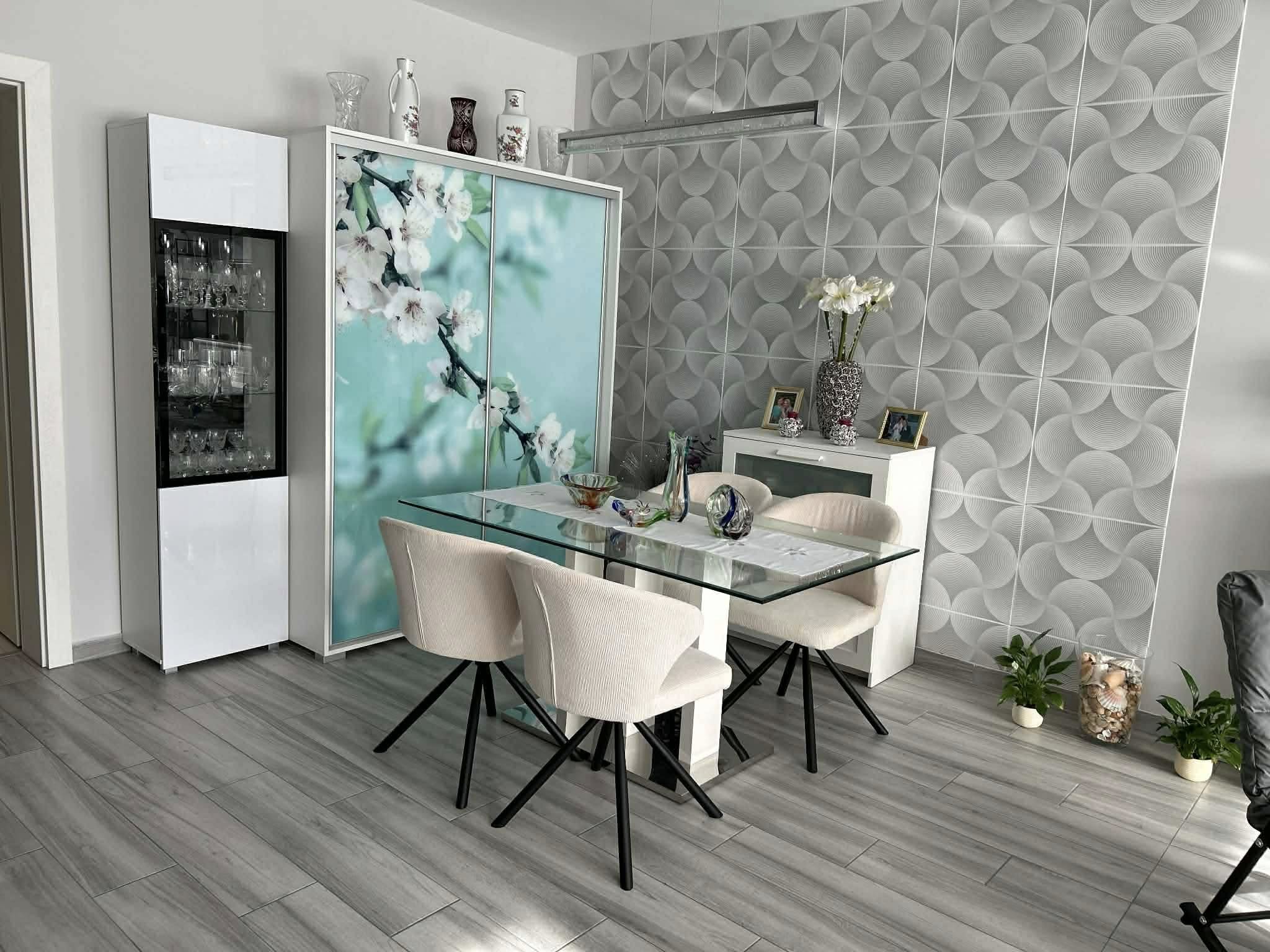 Felszereltség: igényes magasfényű konyha, minőségi beépített konyhai gépekkel, padlófűtés, plafonhűtés, inverteres hűtő-fűtő klíma, riasztó, elektromos-távirányítós redőnyök, szúnyogháló, egyedileg szabályozható hűtés és fűtés, kamerás kaputelefon, okos otthon kiépítési lehetőséggel. Minőségi burkolatok. Fűtési költség akár nulla Ft, mivel a jó szigetelés és a remek tájolás miatt 23-34 fok van a lakásban télen is fűtés nélkül. Csendes, nyugodt környezet. Lakáshoz tartozik bekamerázott zárt udvarban saját parkolóhely. (Parkoló 4 millió Ft)