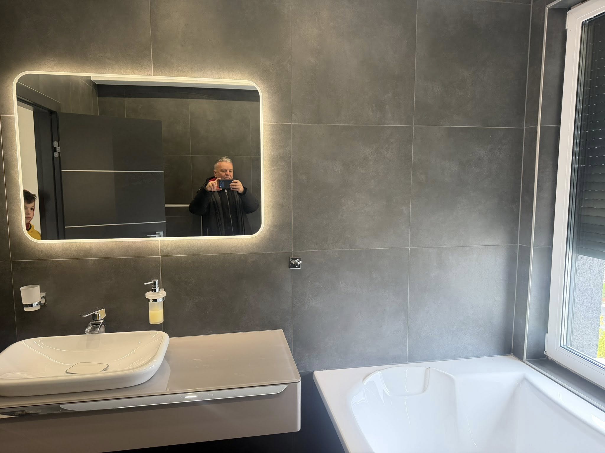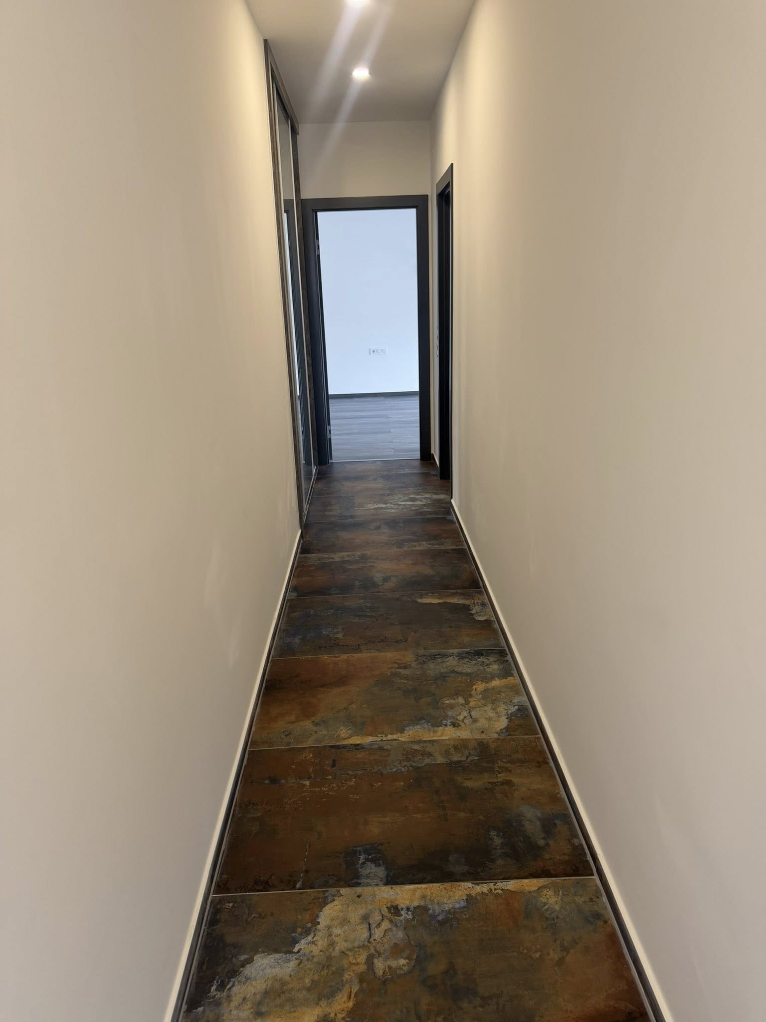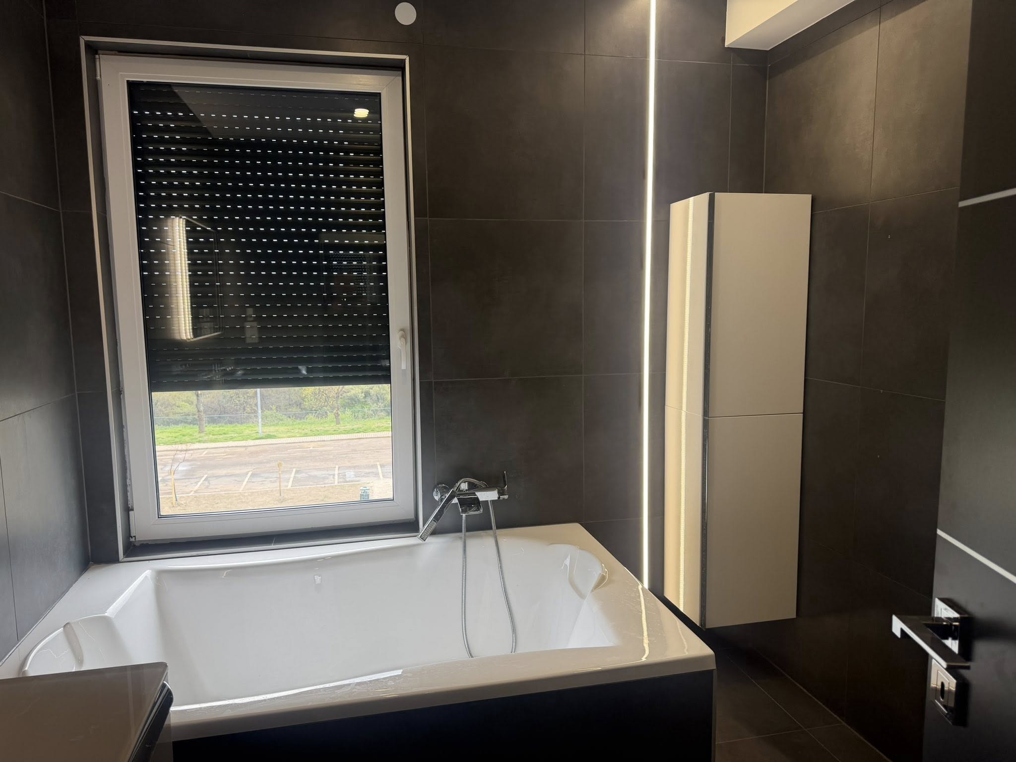 Különleges, minőségi csempékkel burkolva (120×120 + gérbe csiszolt), a hálószobákban pedig laminált padló található. A nappaliban 3D-s falak emelik tovább a lakás színvonalát. A konyhája teljesen gépesített.