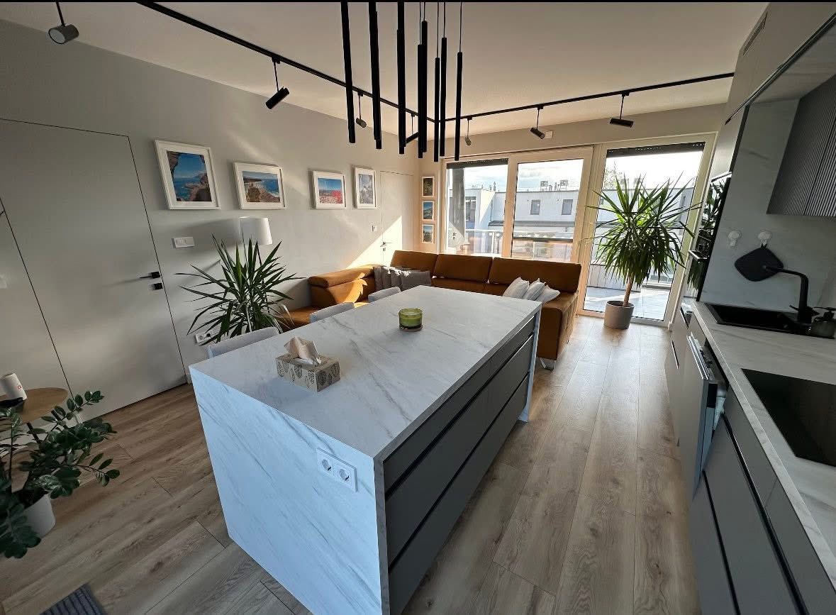 m²-es, amerikai konyhás penthouse lakás, két lélegzetelállító terasszal (összesen 59 m²-en)!